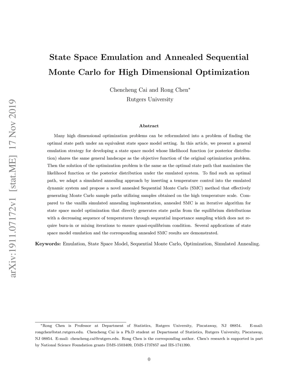 Many high dimensional optimization problems can be reformulated into a problem of finding theoptimal state path under an equivalent state space model setting. In this article, we present a general emulation strategy for developing a state space model whose likelihood function (or posterior distribution) shares the same general landscape as the objective function of the original optimization problem. Then the solution of the optimization problem is the same as the optimal state path that maximizes the likelihood function or the posterior distribution under the emulated system. To find such an optimal path, we adapt a simulated annealing approach by inserting a temperature control into the emulated dynamic system and propose a novel annealed Sequential Monte Carlo (SMC) method that effectively generating Monte Carlo sample paths utilizing samples obtained on the high temperature scale. Compared to the vanilla simulated annealing implementation, annealed SMC is an iterative algorithm for state space model optimization that directly generates state paths from the equilibrium distributions with a decreasing sequence of temperatures through sequential importance sampling which does not require burn-in or mixing iterations to ensure quasi-equilibrium condition. Several applications of state space model emulation and the corresponding annealed SMC results are demonstrated.