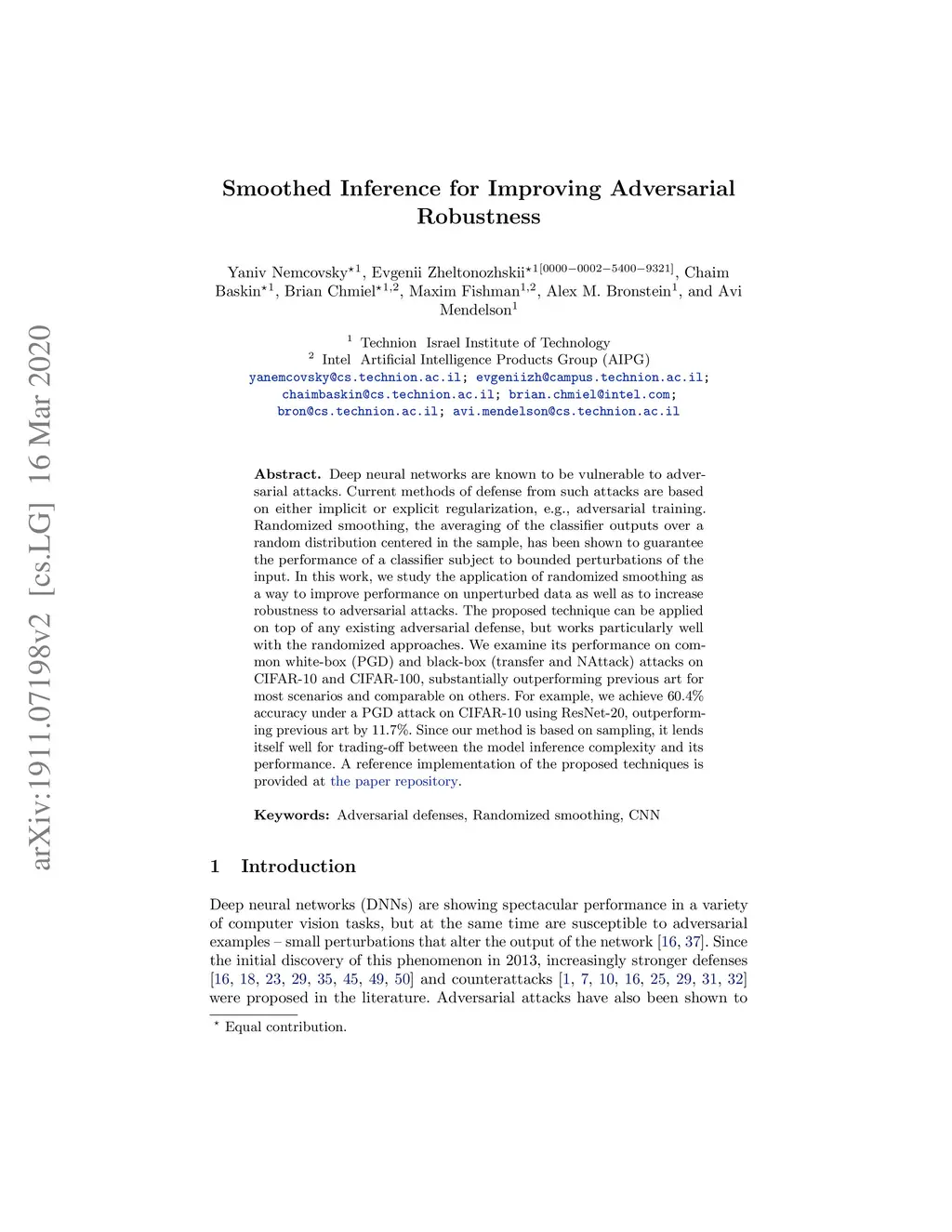 Smoothed Inference for Adversarially-Trained Models