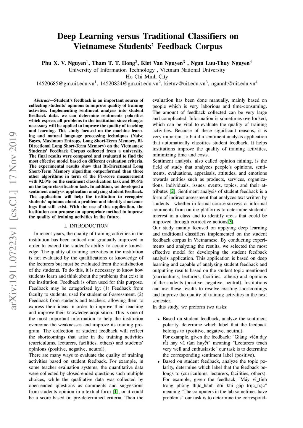 Deep Learning versus Traditional Classifiers on Vietnamese Students'