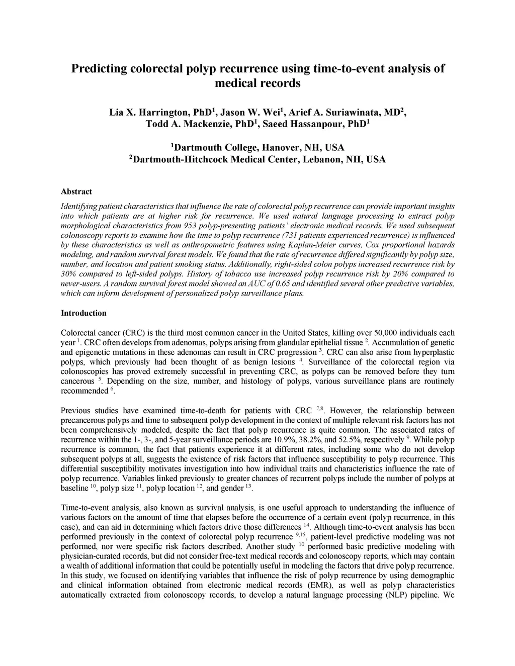 Predicting colorectal polyp recurrence using time-to-event analysis of