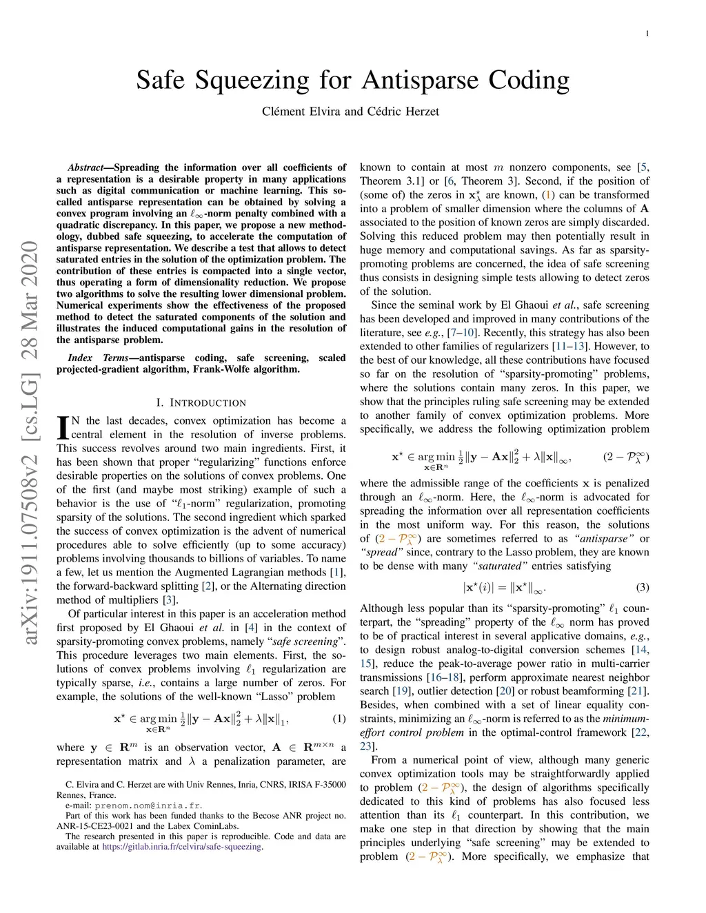 Spreading the information over all coefficients of a representation is a desirable property in many applications such as digital communication or machine learning. This so-called antisparse representation can be obtained by solving a convex program involving an -norm penalty combined with a quadratic discrepancy. In this paper, we propose a new methodology, dubbed safe squeezing, to accelerate the computation of antisparse representation. We describe a test that allows to detect saturated entries in the solution of the optimization problem. The contribution of these entries is compacted into a single vector, thus operating a form of dimensionality reduction. We propose two algorithms to solve the resulting lower dimensional problem. Numerical experiments show the effectiveness of the proposed method to detect the saturated components of the solution and illustrates the induced computational gains in the resolution of the antisparse problem.