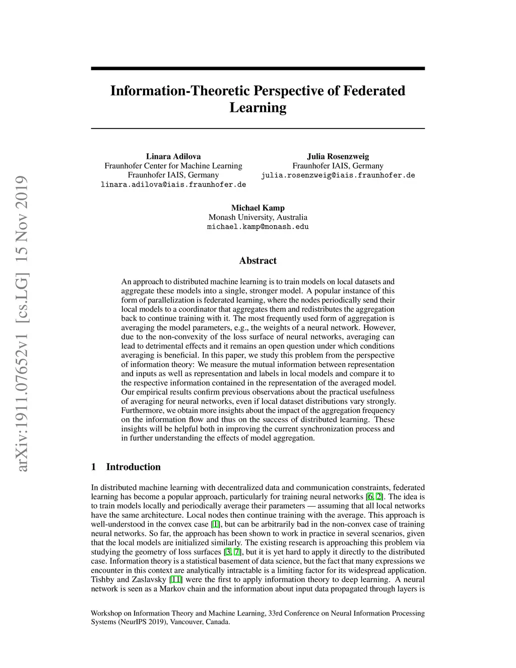 Information-Theoretic Perspective of Federated Learning