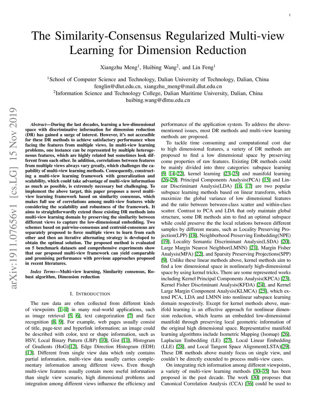The Similarity-Consensus Regularized Multi-view Learning for Dimension