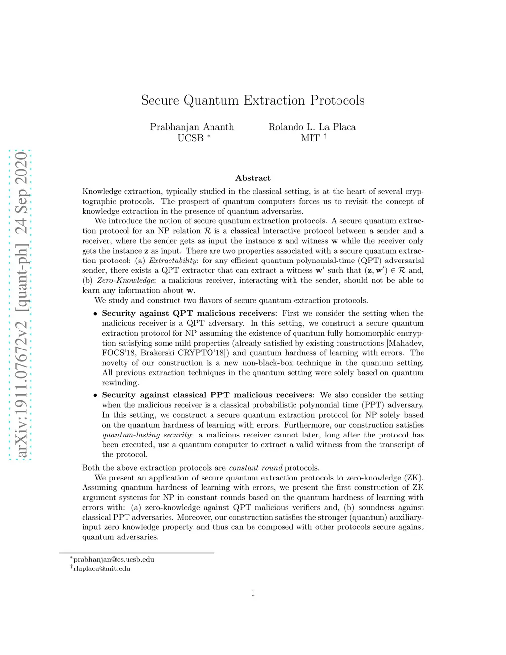 Secure Quantum Extraction Protocols