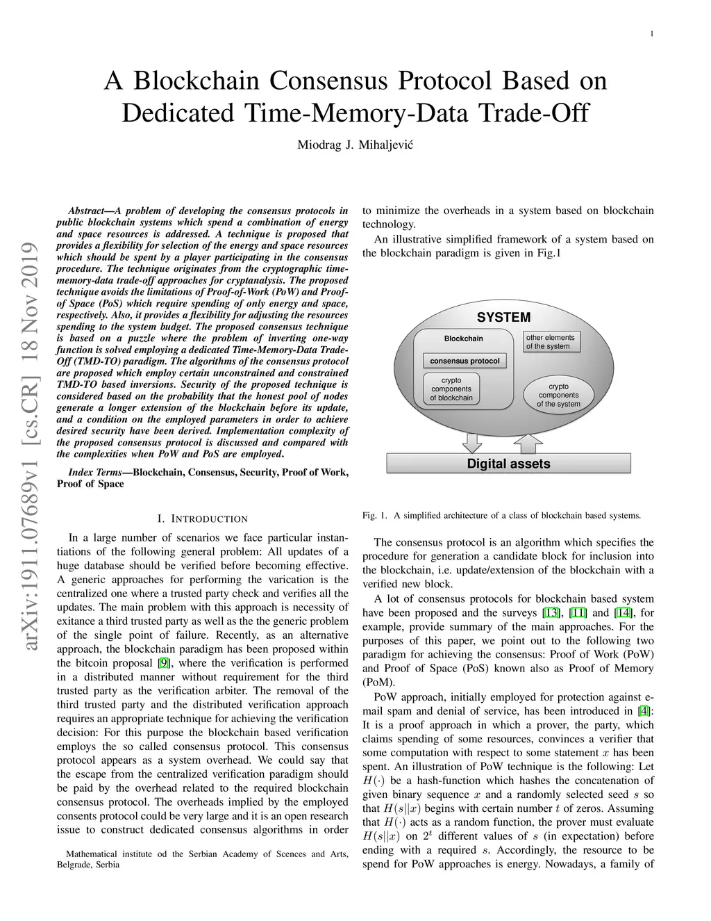 A Blockchain Consensus Protocol Based on Dedicated Time-Memory-Data