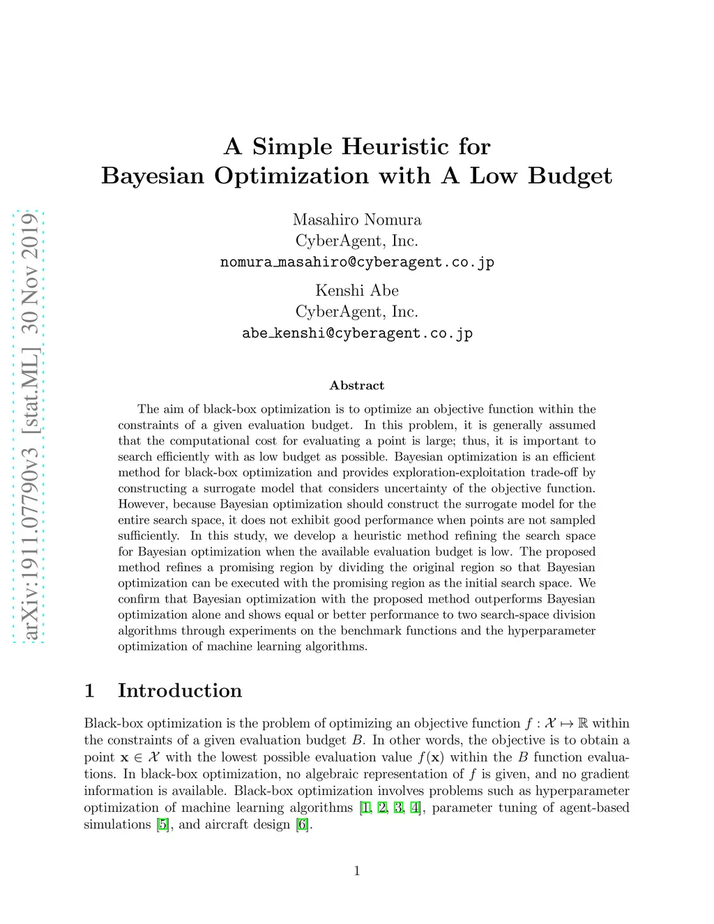 A Simple Heuristic for Bayesian Optimization with A Low Budget