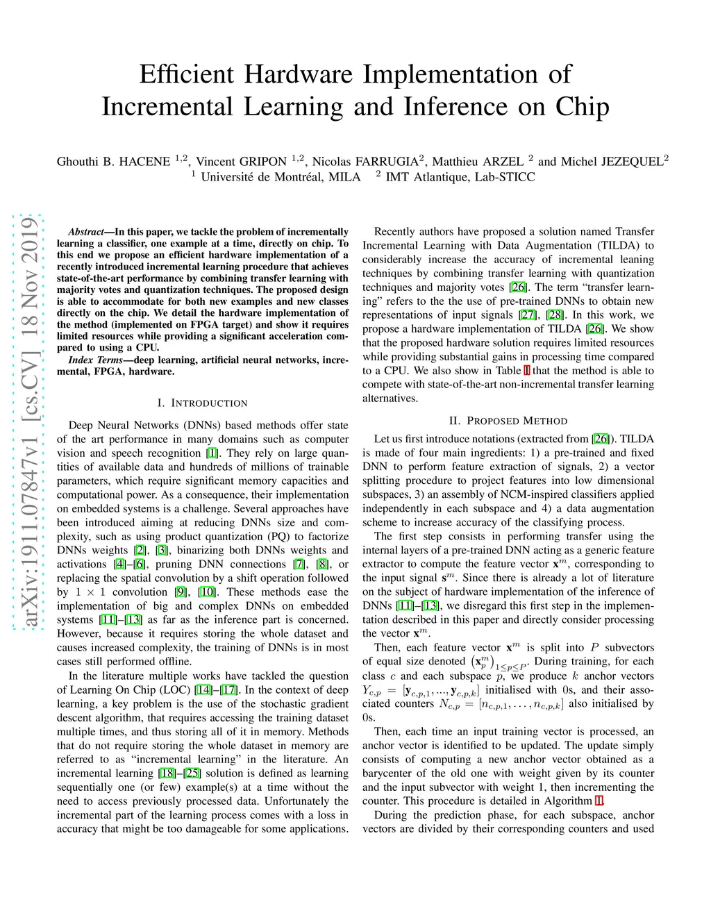 Efficient Hardware Implementation of Incremental Learning and Inference