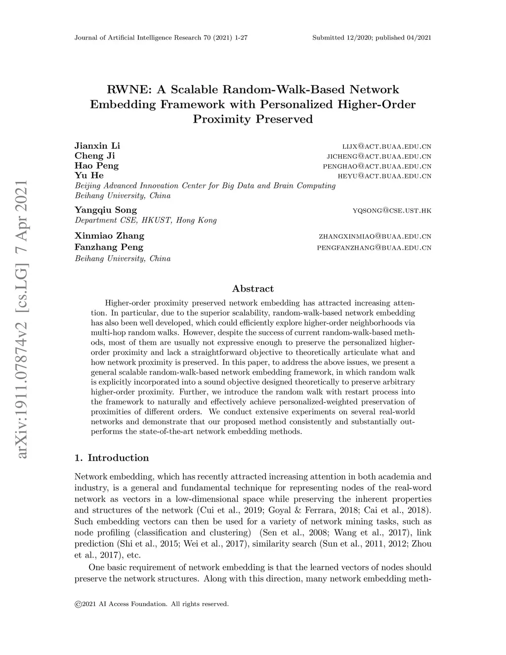 RWNE: A Scalable Random-Walk-Based Network Embedding Framework with