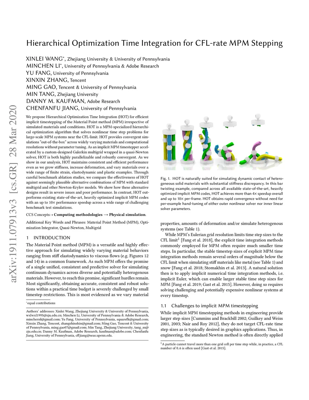Hierarchical Optimization Time Integration for CFL-rate MPM Stepping
