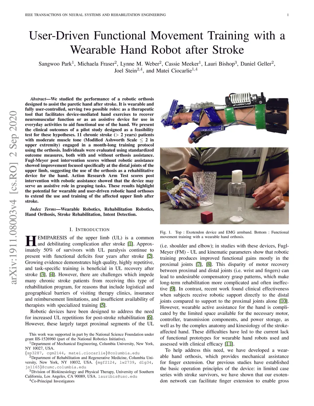User-Driven Functional Movement Training with a Wearable Hand Robot