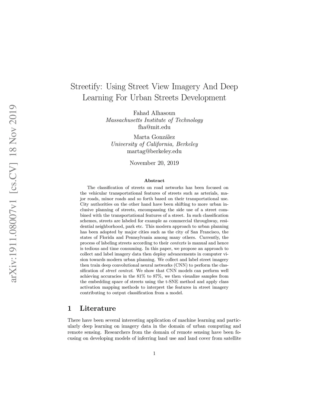 Streetify: Using Street View Imagery And Deep Learning For Urban Streets