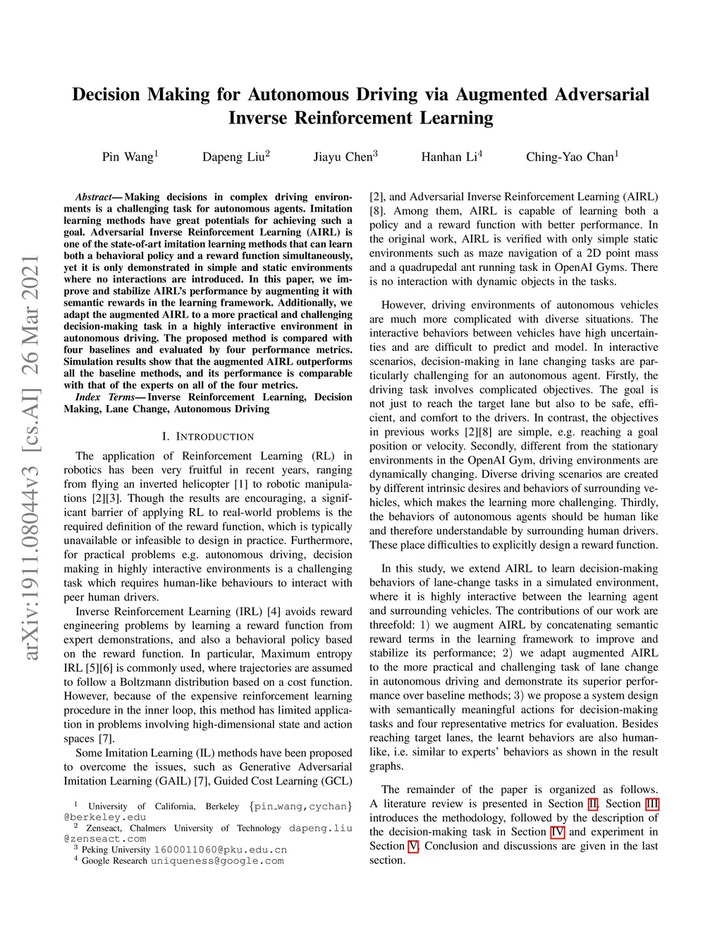 Decision Making for Autonomous Driving via Augmented Adversarial Inverse