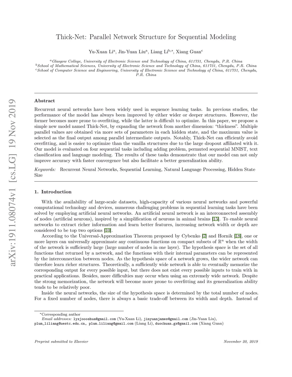 Thick-Net: Parallel Network Structure for Sequential Modeling