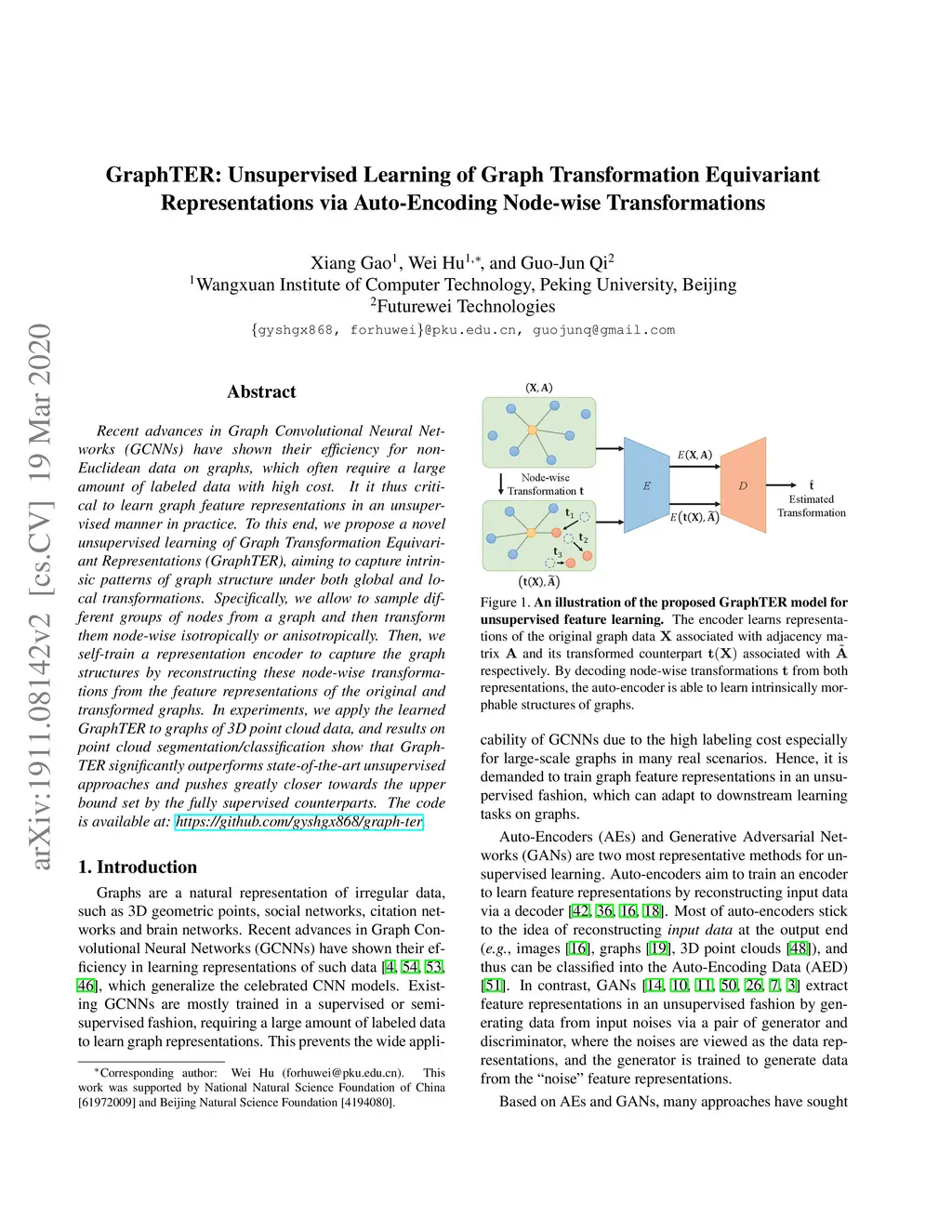 GraphTER: Unsupervised Learning of Graph Transformation Equivariant
