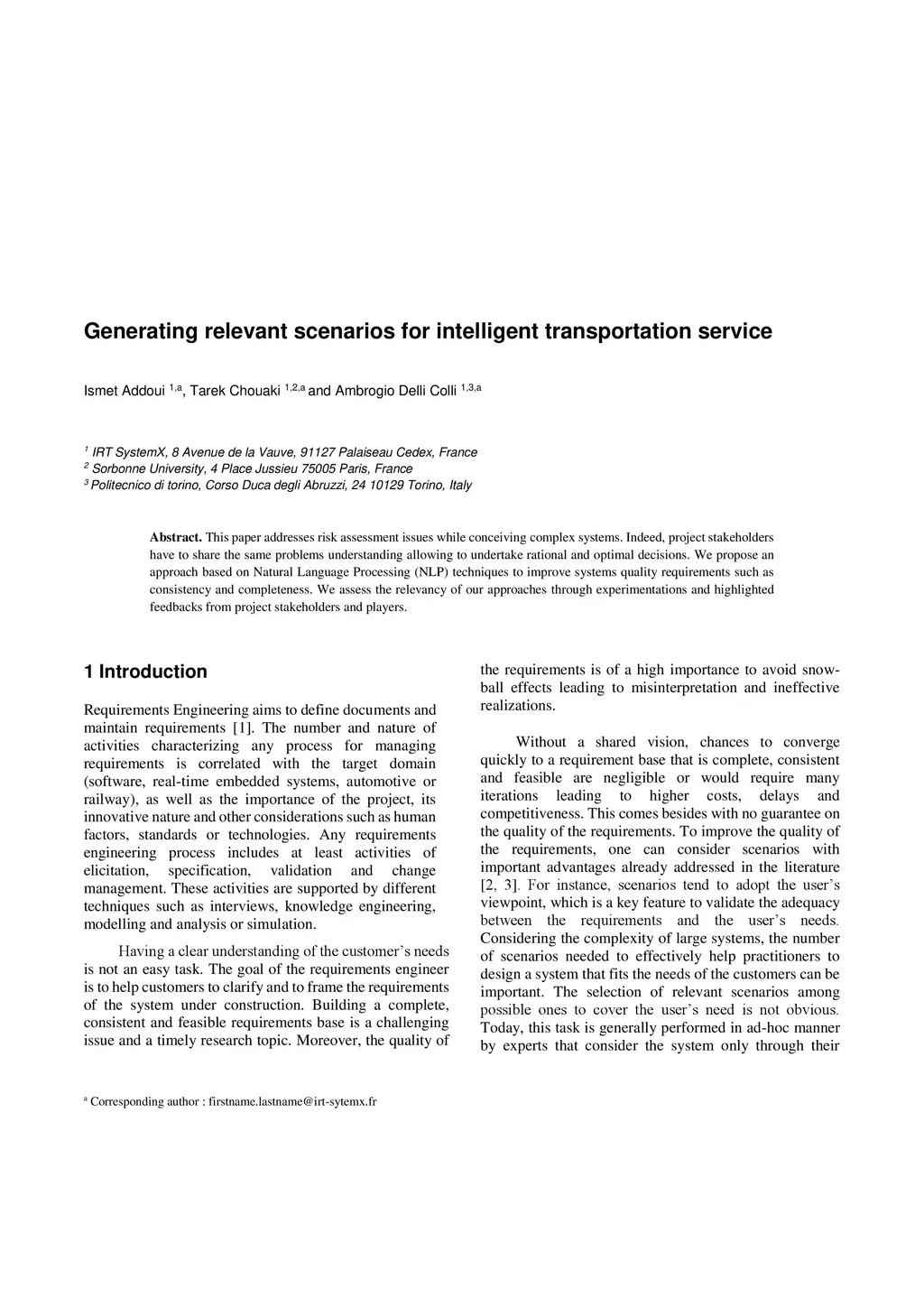 This paper addresses risk assessment issues while conceiving complex systems. Indeed, project stakeholders have to share the same problems understanding allowing to undertake rational and optimal decisions. We propose an approach based on Natural Language Processing (NLP) techniques to improve systems quality requirements such as consistency and completeness. We assess the relevancy of our approaches through experimentations and highlighted feedbacks from project stakeholders and players.