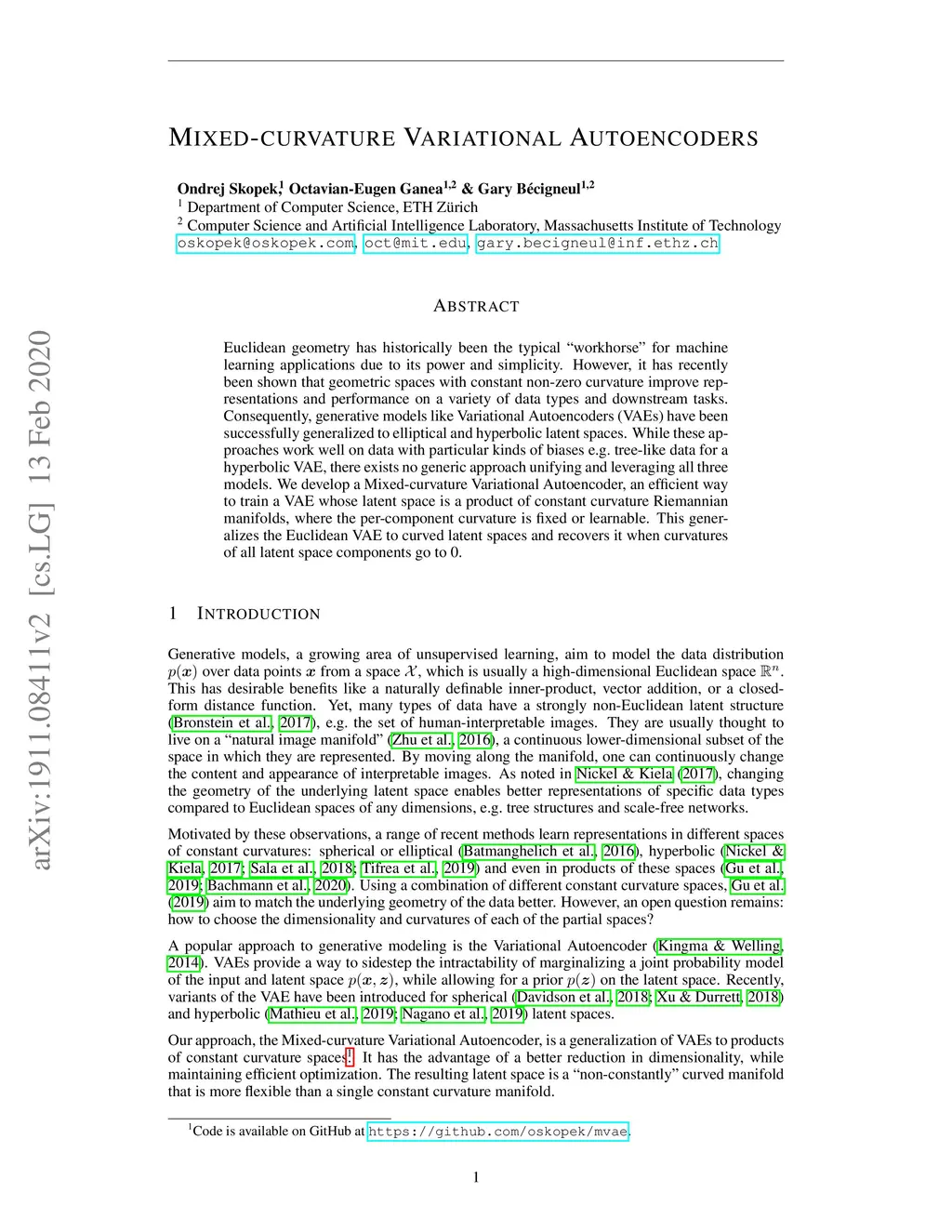 Mixed-curvature Variational Autoencoders