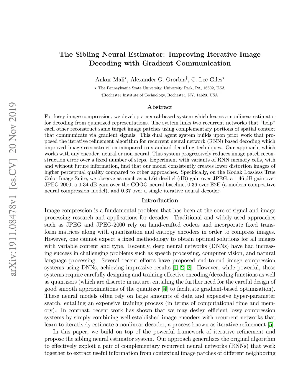 Sibling Neural Estimators: Improving Iterative Image Decoding with