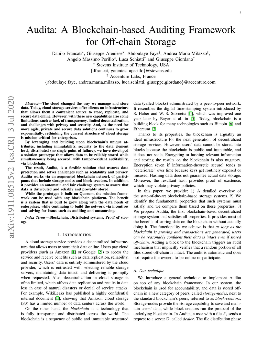 Audita: A Blockchain-based Auditing Framework for Off-chain Storage