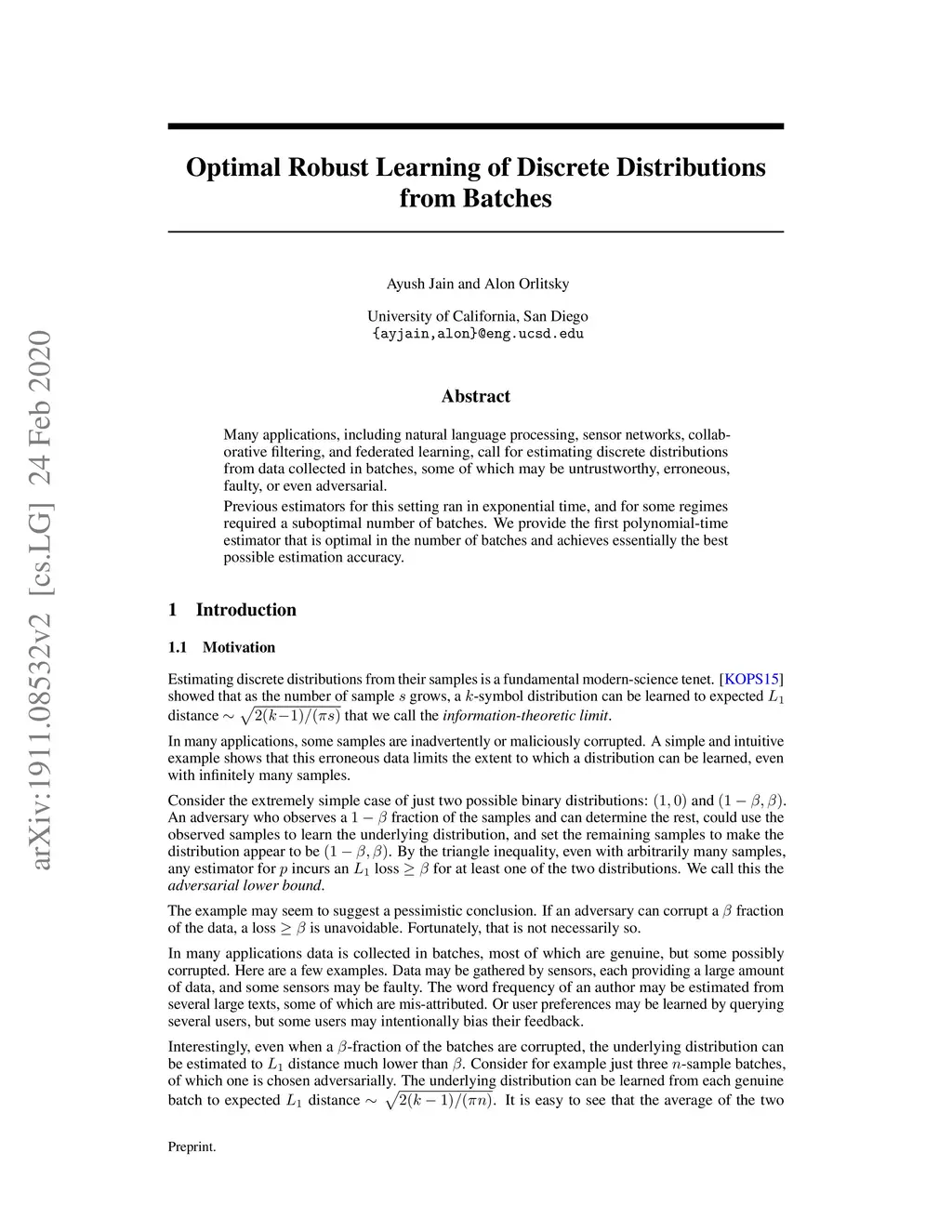 Many applications, including natural language processing, sensor networks, collaborative filtering, and federated learning, call for estimating discrete distributions from data collected in batches, some of which may be untrustworthy, erroneous, faulty, or even adversarial. Previous estimators for this setting ran in exponential time, and for some regimes required a suboptimal number of batches. We provide the first polynomial-time estimator that is optimal in the number of batches and achieves essentially the best possible estimation accuracy.
