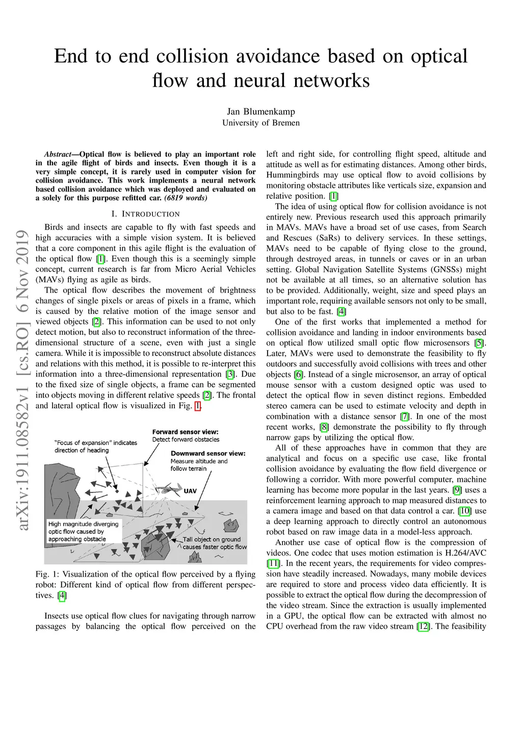 End to end collision avoidance based on optical flow and neural networks