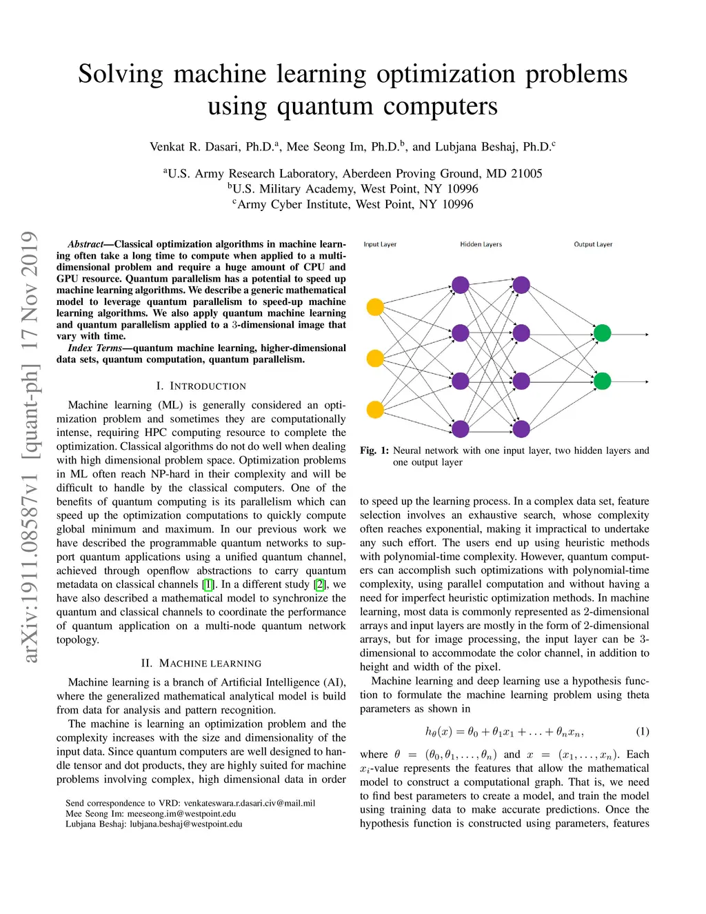 Classical optimization algorithms in machine learning often take a long time to compute when applied to a multi-dimensional problem and require a huge amount of CPU and GPU resource. Quantum parallelism has a potential to speed up machine learning algorithms. We describe a generic mathematical model to leverage quantum parallelism to speed-up machine learning algorithms. We also apply quantum machine learning and quantum parallelism applied to a -dimensional image that vary with time.
