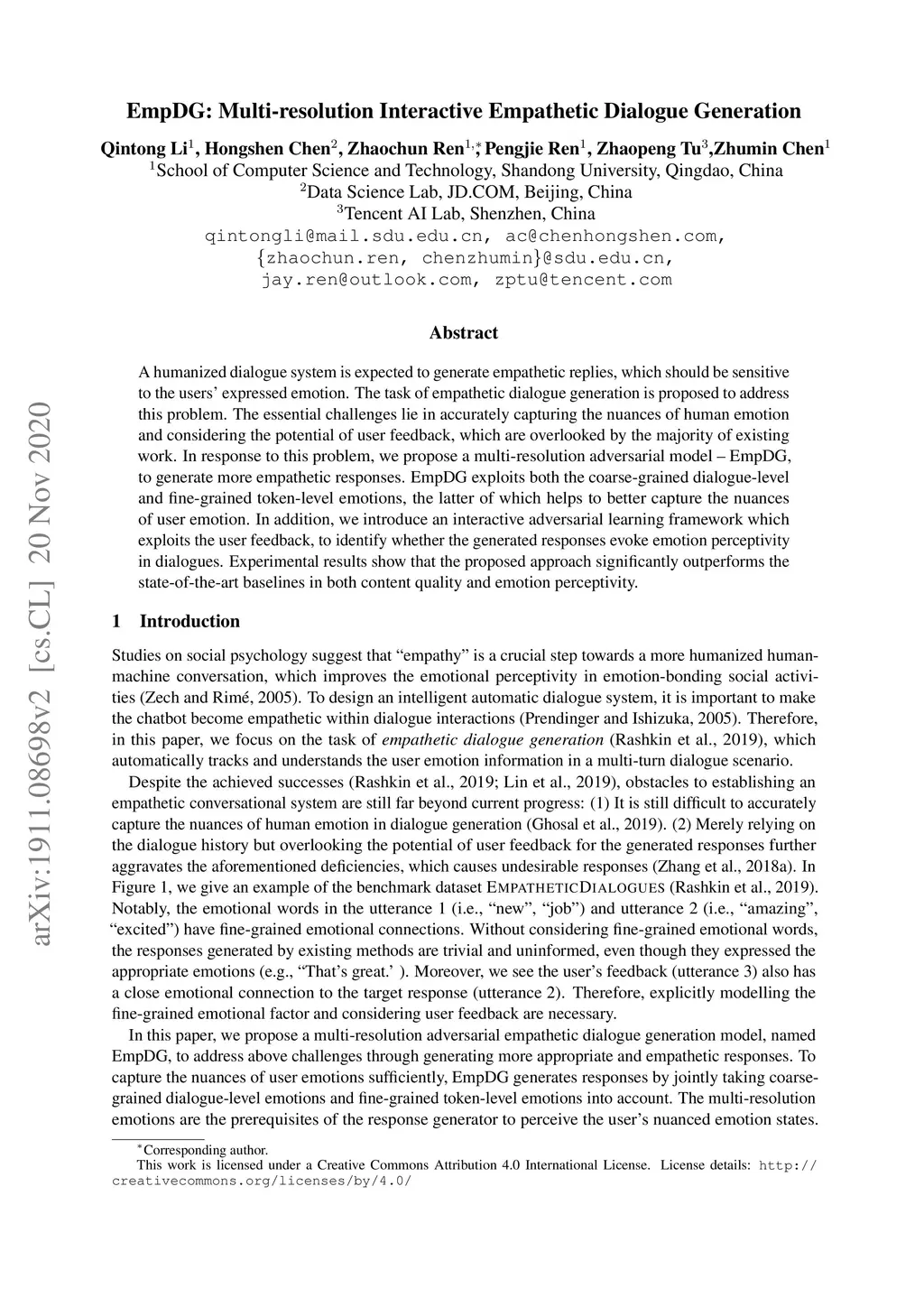EmpDG: Multiresolution Interactive Empathetic Dialogue Generation
