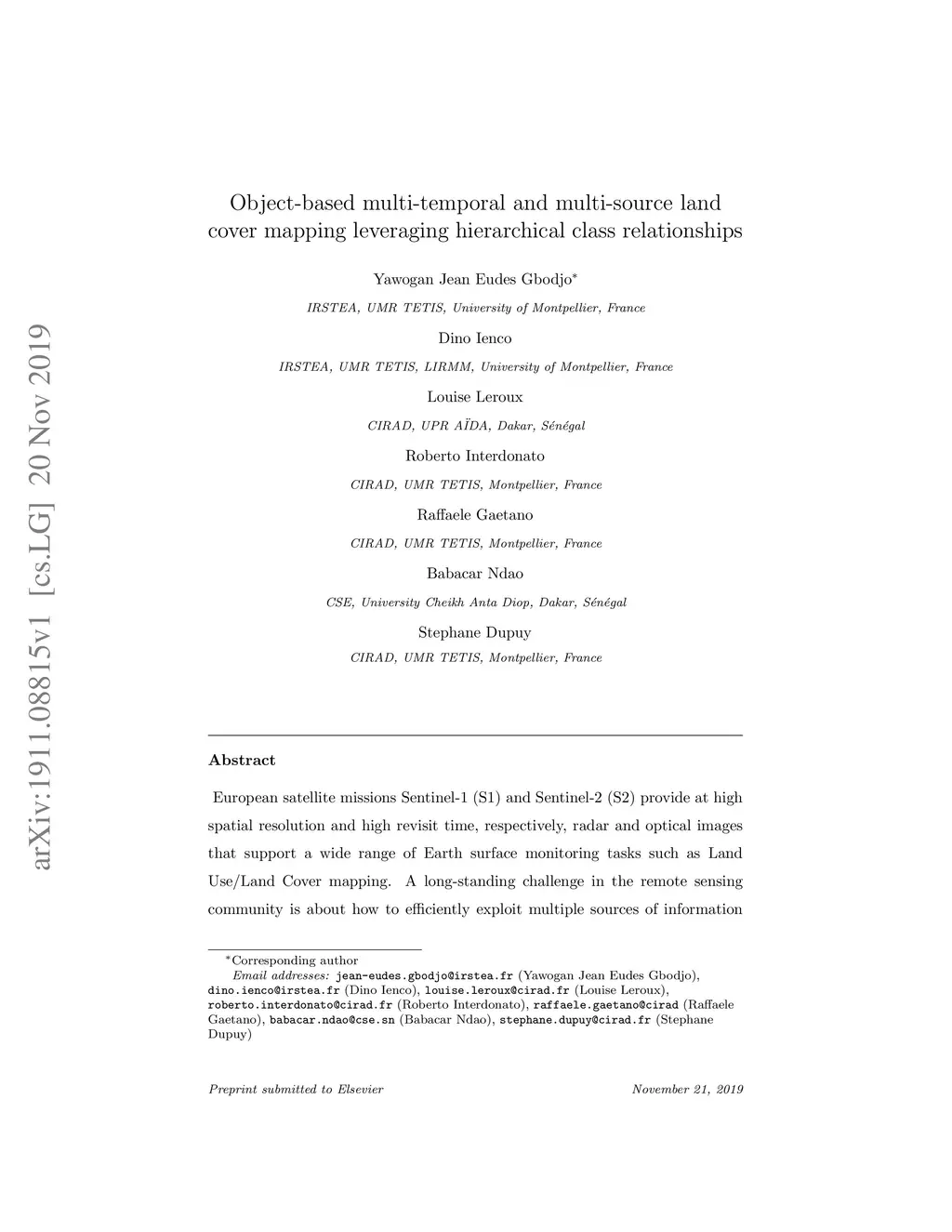 Object-based multi-temporal and multi-source land cover mapping
