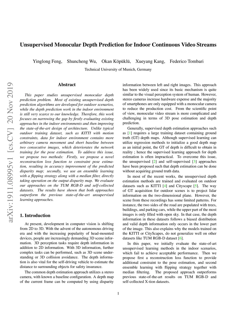 Unsupervised Monocular Depth Prediction for Indoor Continuous Video