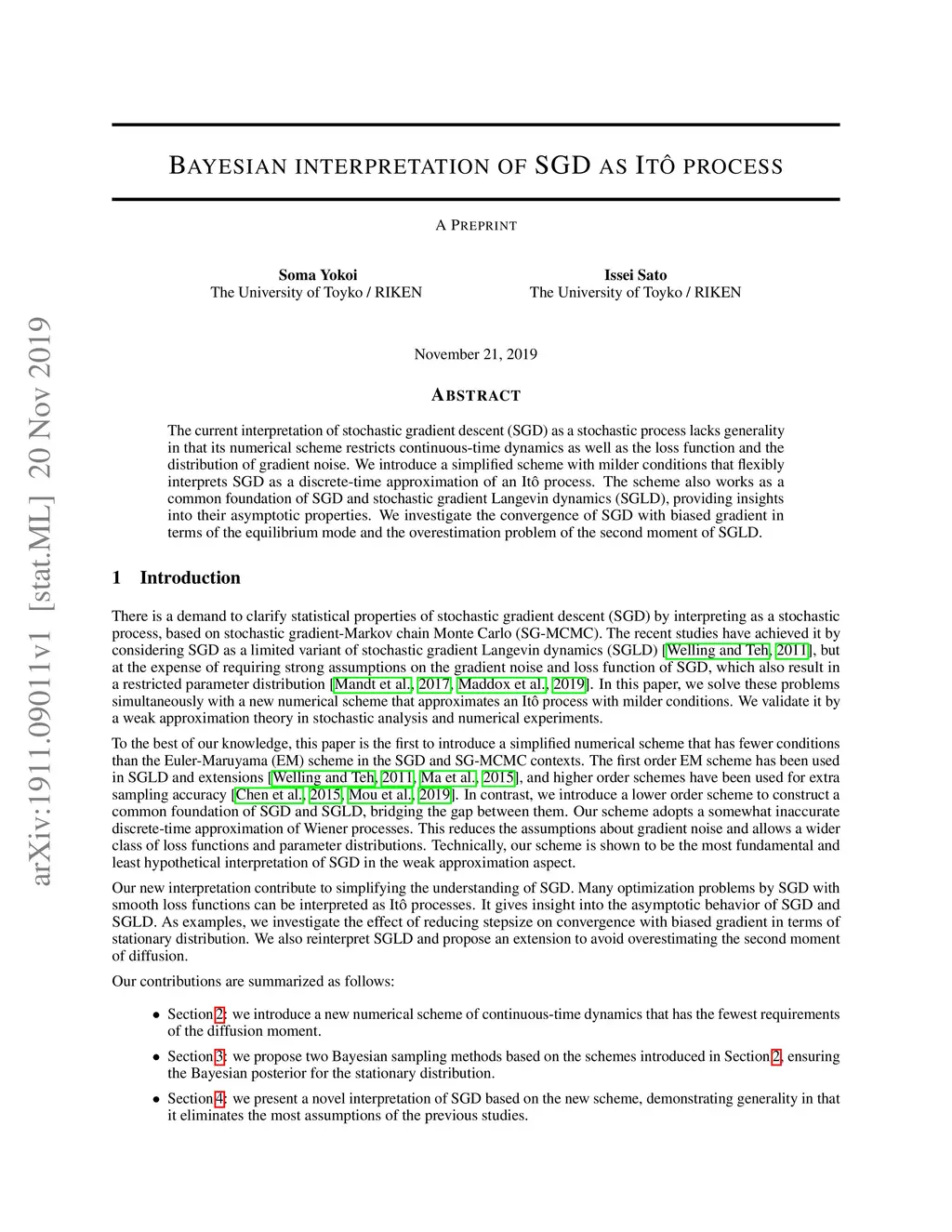 The current interpretation of stochastic gradient descent (SGD) as a stochastic process lacks generality in that its numerical scheme restricts continuous-time dynamics as well as the loss function and the distribution of gradient noise. We introduce a simplified scheme with milder conditions that flexibly interprets SGD as a discrete-time approximation of an Ito process. The scheme also works as a common foundation of SGD and stochastic gradient Langevin dynamics (SGLD), providing insights into their asymptotic properties. We investigate the convergence of SGD with biased gradient in terms of the equilibrium mode and the overestimation problem of the second moment of SGLD.