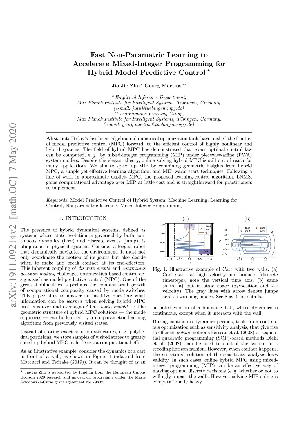Today's fast linear algebra and numerical optimization tools have pushed the frontier of model predictive control (MPC) forward, to the efficient control of highly nonlinear and hybrid systems. The field of hybrid MPC has demonstrated that exact optimal control law can be computed, e.g., by mixed-integer programming (MIP) under piecewise-affine (PWA) system models. Despite the elegant theory, online solving hybrid MPC is still out of reach for many applications. We aim to speed up MIP by combining geometric insights from hybrid MPC, a simple-yet-effective learning algorithm, and MIP warm start techniques. Following a line of work in approximate explicit MPC, the proposed learning-control algorithm, LNMS, gains computational advantage over MIP at little cost and is straightforward for practitioners to implement.