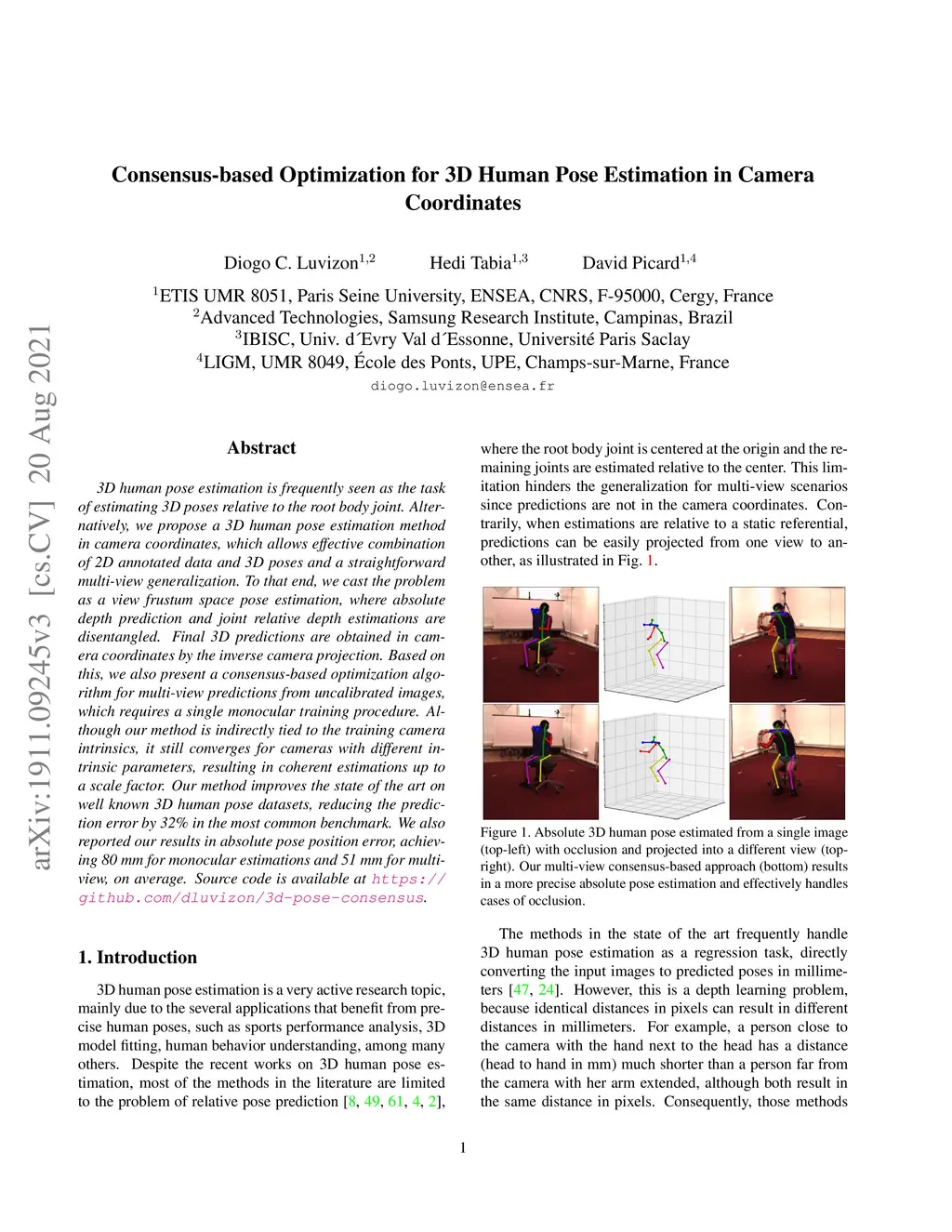 Consensus-based Optimization for 3D Human Pose Estimation in Camera