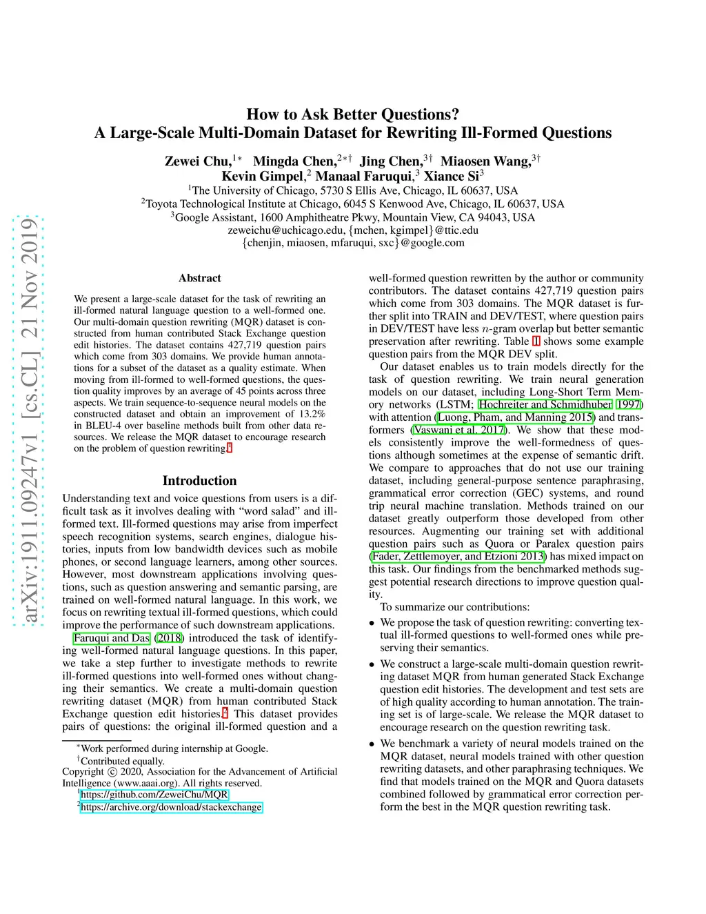 How to Ask Better Questions? A Large-Scale Multi-Domain Dataset for