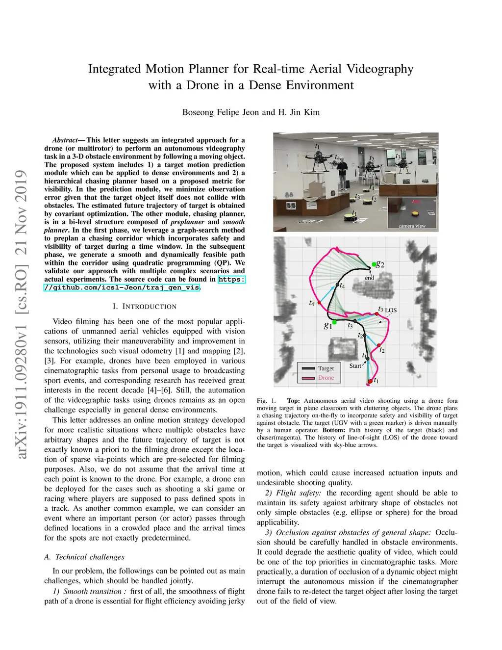 Integrated Motion Planner for Real-time Aerial Videography with a Drone