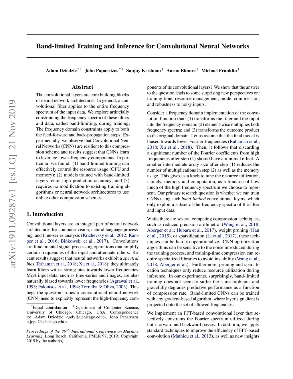 Band-limited Training and Inference for Convolutional Neural Networks