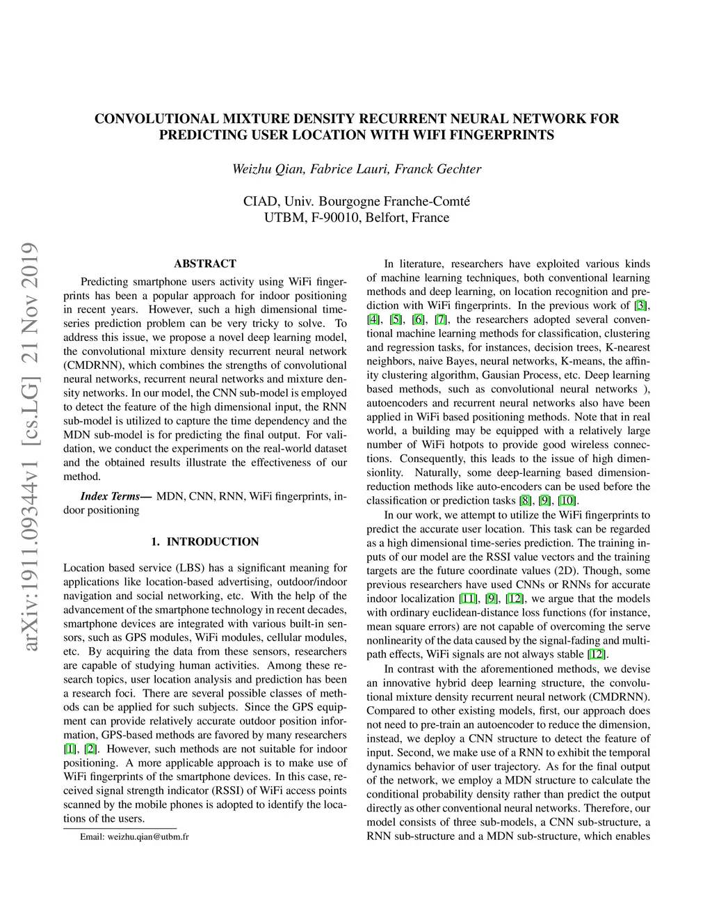 Predicting smartphone users activity using WiFi fingerprints has been a popular approach for indoor positioning in recent years. However, such a high dimensional time-series prediction problem can be very tricky to solve. To address this issue, we propose a novel deep learning model, the convolutional mixture density recurrent neural network (CMDRNN), which combines the strengths of convolutional neural networks, recurrent neural networks and mixture density networks. In our model, the CNN sub-model is employed to detect the feature of the high dimensional input, the RNN sub-model is utilized to capture the time dependency and the MDN sub-model is for predicting the final output. For validation, we conduct the experiments on the real-world dataset and the obtained results illustrate the effectiveness of our method.