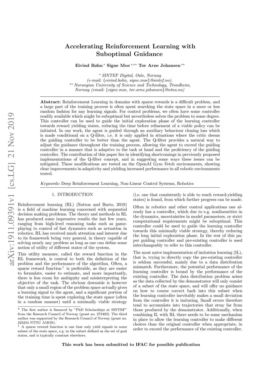 Reinforcement Learning in domains with sparse rewards is a difficult problem, and a large part of the training process is often spent searching the state space in a more or less random fashion for any learning signals. For control problems, we often have some controller readily available which might be suboptimal but nevertheless solves the problem to some degree. This controller can be used to guide the initial exploration phase of the learning controller towards reward yielding states, reducing the time before refinement of a viable policy can be initiated. In our work, the agent is guided through an auxiliary behaviour cloning loss which is made conditional on a Q-filter, i.e. it is only applied in situations where the critic deems the guiding controller to be better than the agent. The Q-filter provides a natural way to adjust the guidance throughout the training process, allowing the agent to exceed the guiding controller in a manner that is adaptive to the task at hand and the proficiency of the guiding controller. The contribution of this paper lies in identifying shortcomings in previously proposed implementations of the Q-filter concept, and in suggesting some ways these issues can be mitigated. These modifications are tested on the OpenAI Gym Fetch environments, showing clear improvements in adaptivity and yielding increased performance in all robotic environments tested.