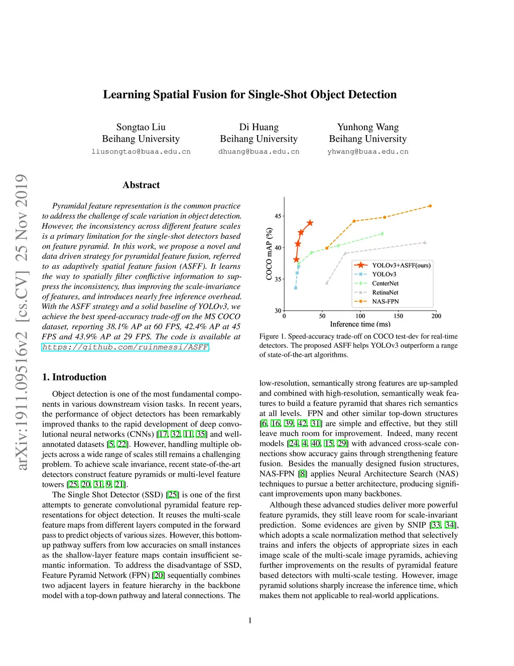 Learning Spatial Fusion for Single-Shot Object Detection