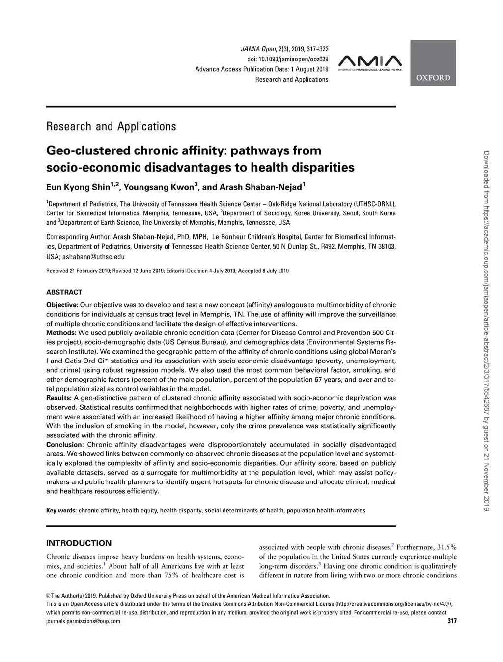 Geo-clustered chronic affinity: pathways from socio-economic