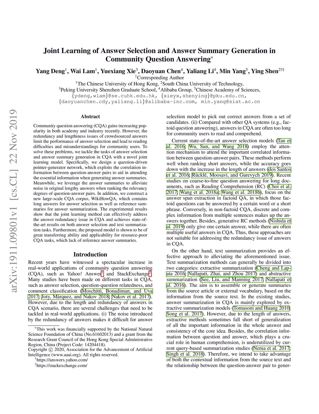 Joint Learning of Answer Selection and Answer Summary Generation in