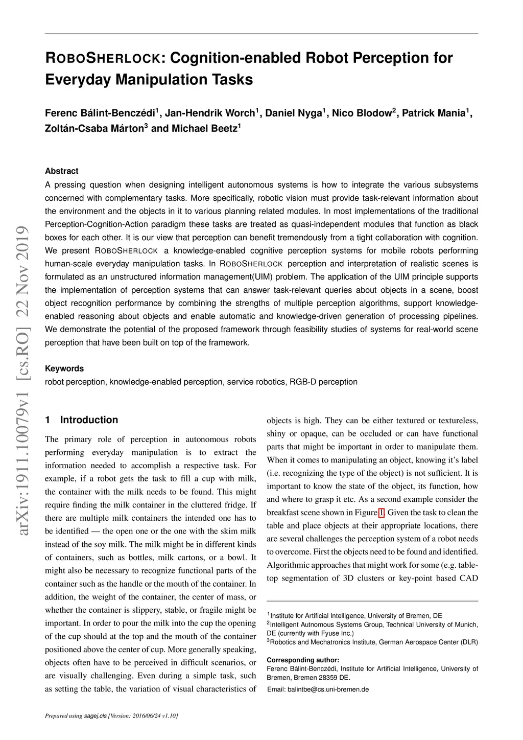 RoboSherlock: Cognition-enabled Robot Perception for Everyday