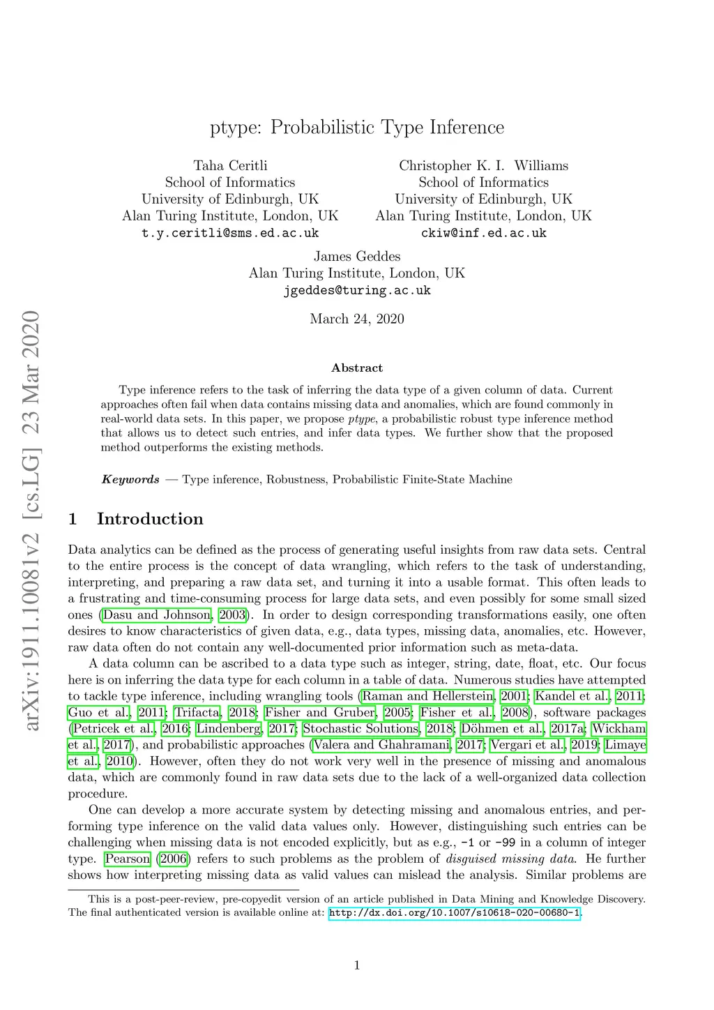Data mining and knowledge discovery (DMKD), 2019