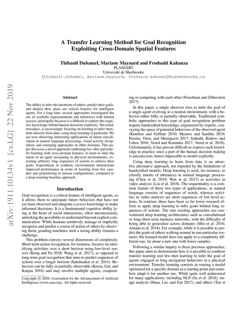 The ability to infer the intentions of others, predict their goals, and deduce their plans are critical features for intelligent agents. For a long time, several approaches investigated the use of symbolic representations and inferences with limited success, principally because it is difficult to capture the cognitive knowledge behind human decisions explicitly. The trend, nowadays, is increasingly focusing on learning to infer intentions directly from data, using deep learning in particular. We are now observing interesting applications of intent classification in natural language processing, visual activity recognition, and emerging approaches in other domains. This paper discusses a novel approach combining few-shot and transfer learning with cross-domain features, to learn to infer the intent of an agent navigating in physical environments, executing arbitrary long sequences of actions to achieve their goals. Experiments in synthetic environments demonstrate improved performance in terms of learning from few samples and generalizing to unseen configurations, compared to a deep-learning baseline approach.