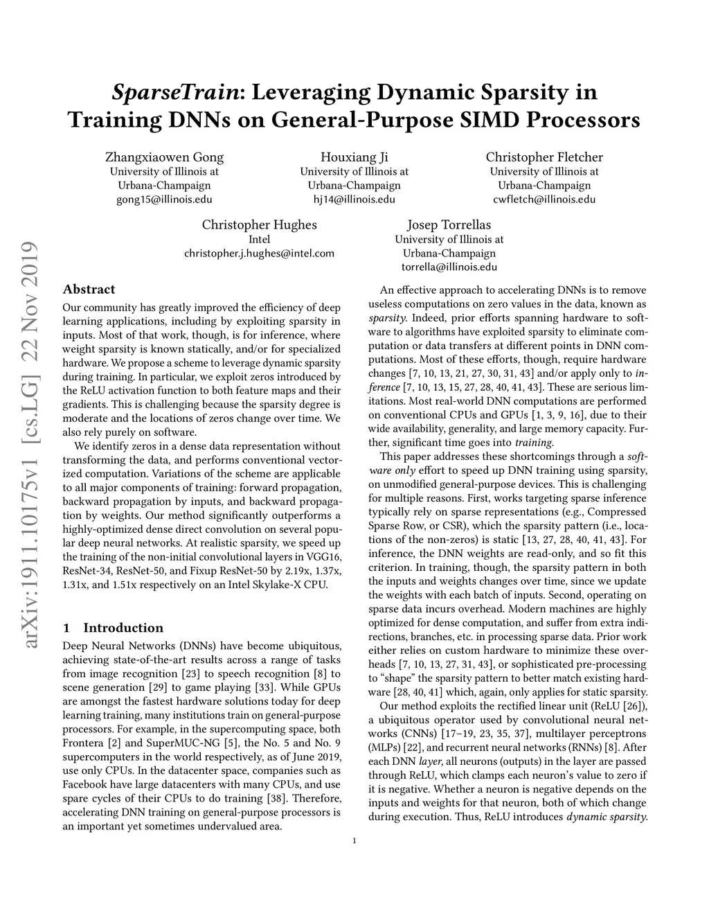 SparseTrain:Leveraging Dynamic Sparsity in Training DNNs on