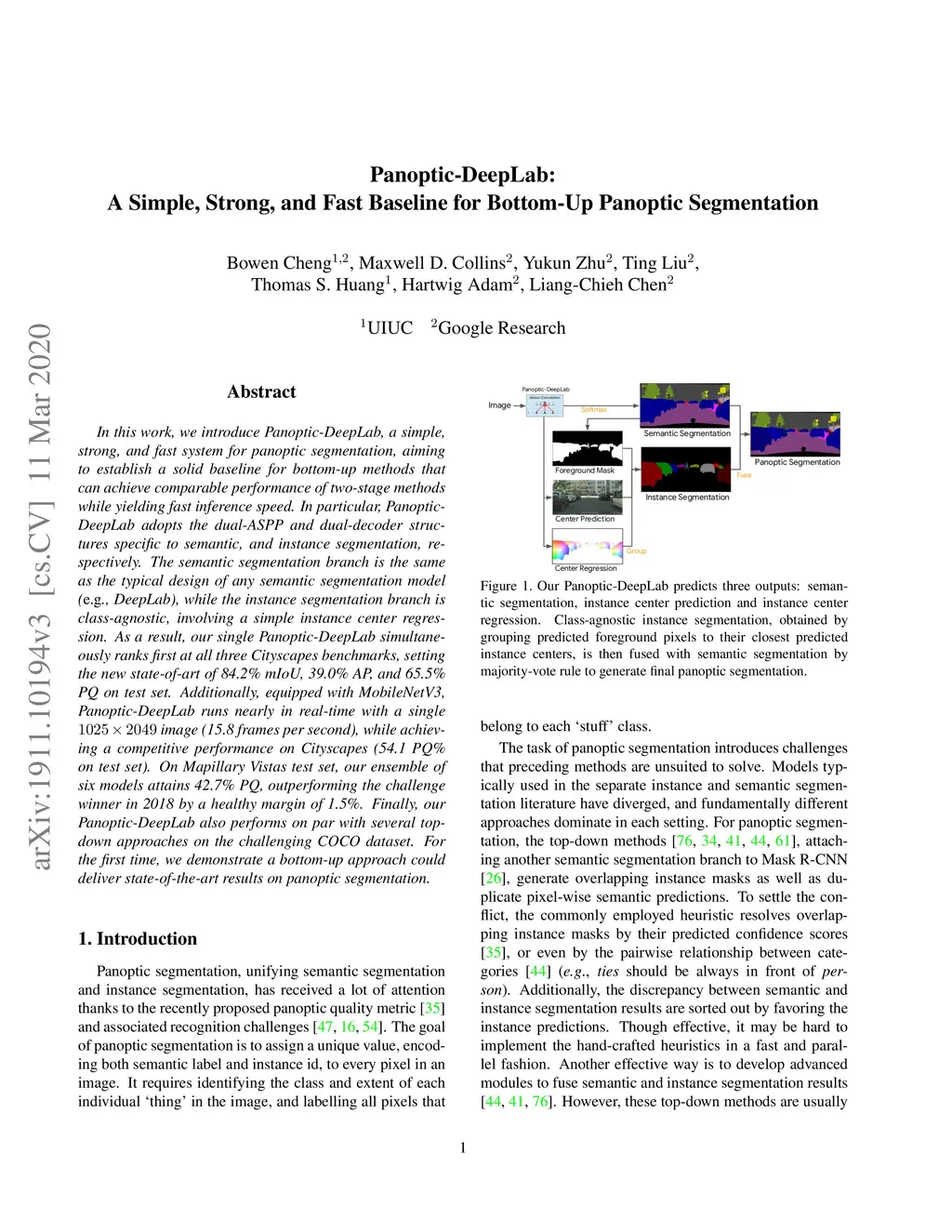Panoptic-DeepLab: A Simple, Strong, and Fast Baseline for Bottom-Up