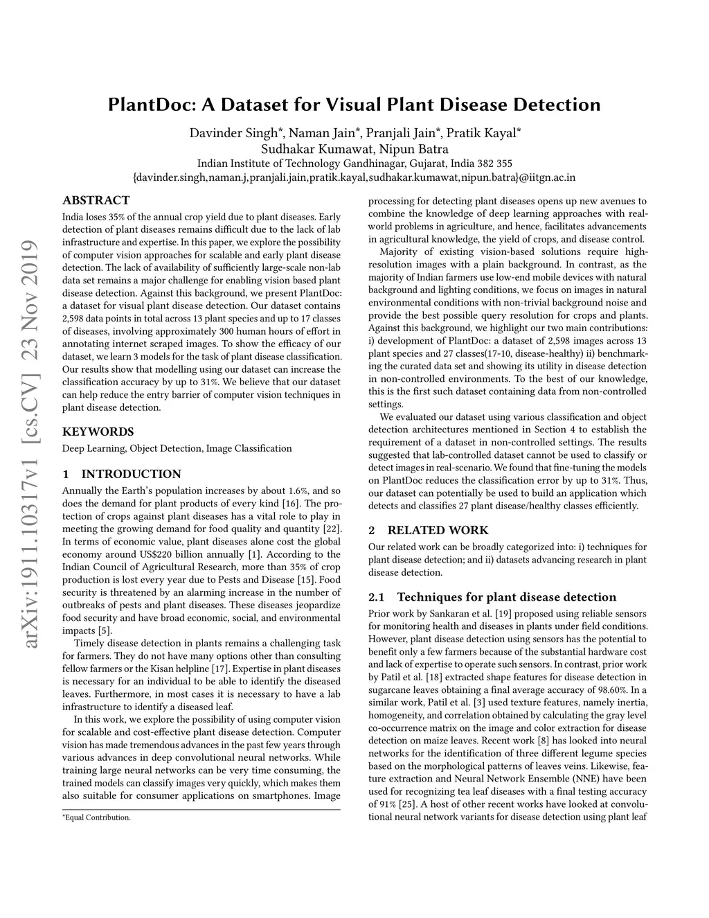 PlantDoc: A Dataset for Visual Plant Disease Detection