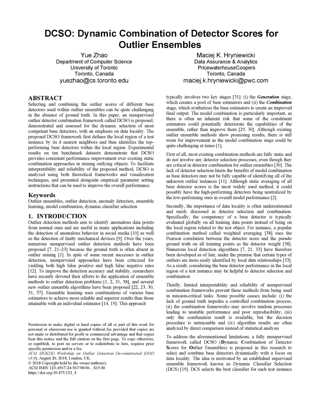 DCSO: Dynamic Combination of Detector Scores for Outlier Ensembles