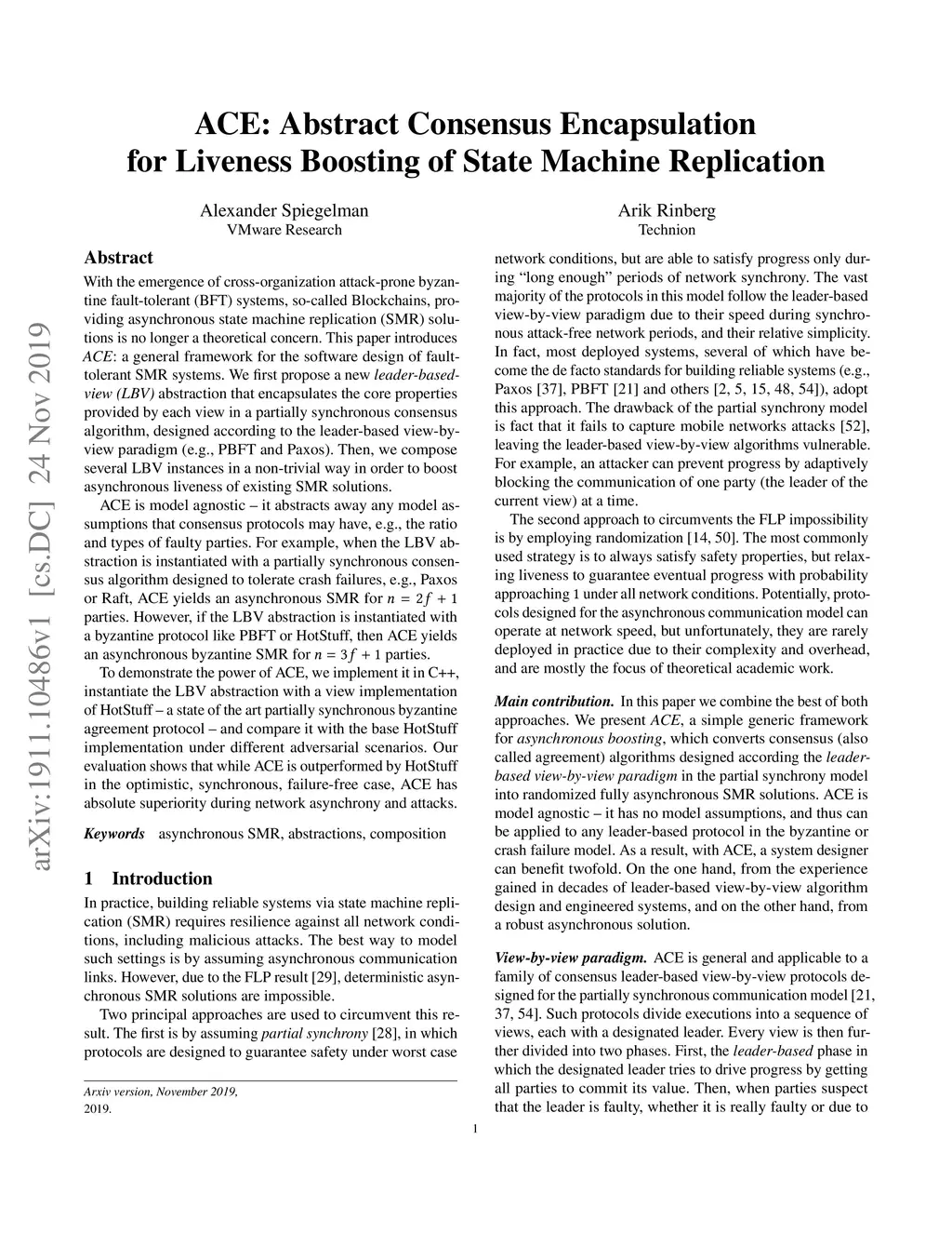 With the emergence of cross-organization attack-prone byzantine fault-tolerant (BFT) systems, so-called Blockchains, providing asynchronous state machine replication (SMR) solutions is no longer a theoretical concern. This paper introduces ACE: a general framework for the software design of fault-tolerant SMR systems. We first propose a new leader-based-view (LBV) abstraction that encapsulates the core properties provided by each view in a partially synchronous consensus algorithm, designed according to the leader-based view-by-view paradigm (e.g., PBFT and Paxos). Then, we compose several LBV instances in a non-trivial way in order to boost asynchronous liveness of existing SMR solutions. ACE is model agnostic - it abstracts away any model assumptions that consensus protocols may have, e.g., the ratio and types of faulty parties. For example, when the LBV abstraction is instantiated with a partially synchronous consensus algorithm designed to tolerate crash failures, e.g., Paxos or Raft, ACE yields an asynchronous SMR for parties. However, if the LBV abstraction is instantiated with a byzantine protocol like PBFT or HotStuff, then ACE yields an asynchronous byzantine SMR for parties. To demonstrate the power of ACE, we implement it in C++, instantiate the LBV abstraction with a view implementation of HotStuff -- a state of the art partially synchronous byzantine agreement protocol -- and compare it with the base HotStuff implementation under different adversarial scenarios. Our evaluation shows that while ACE is outperformed by HotStuff in the optimistic, synchronous, failure-free case, ACE has absolute superiority during network asynchrony and attacks.