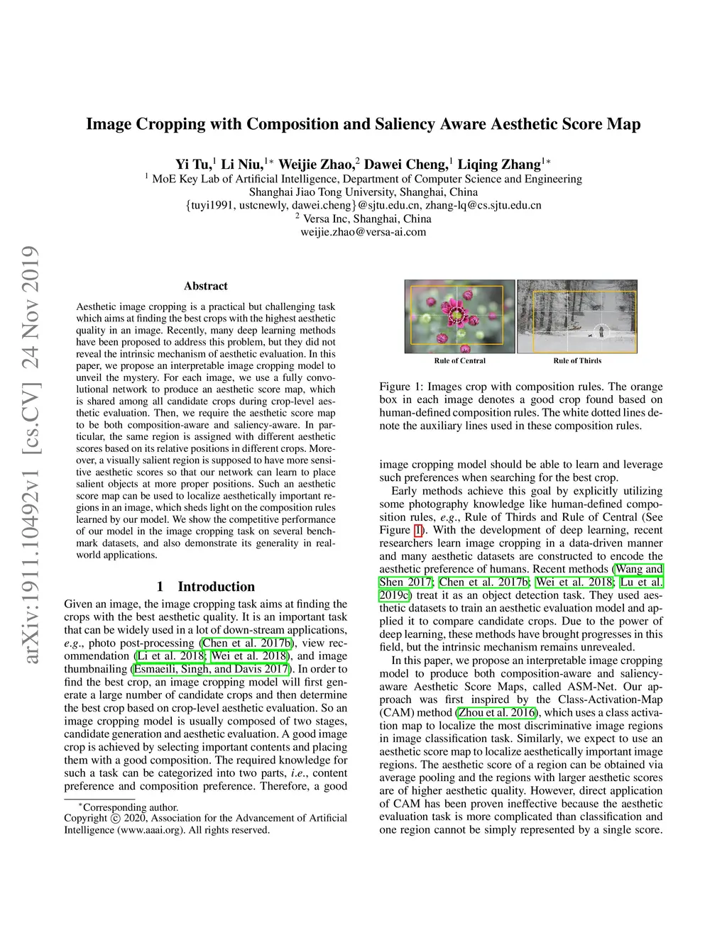 Image Cropping with Composition and Saliency Aware Aesthetic Score Map
