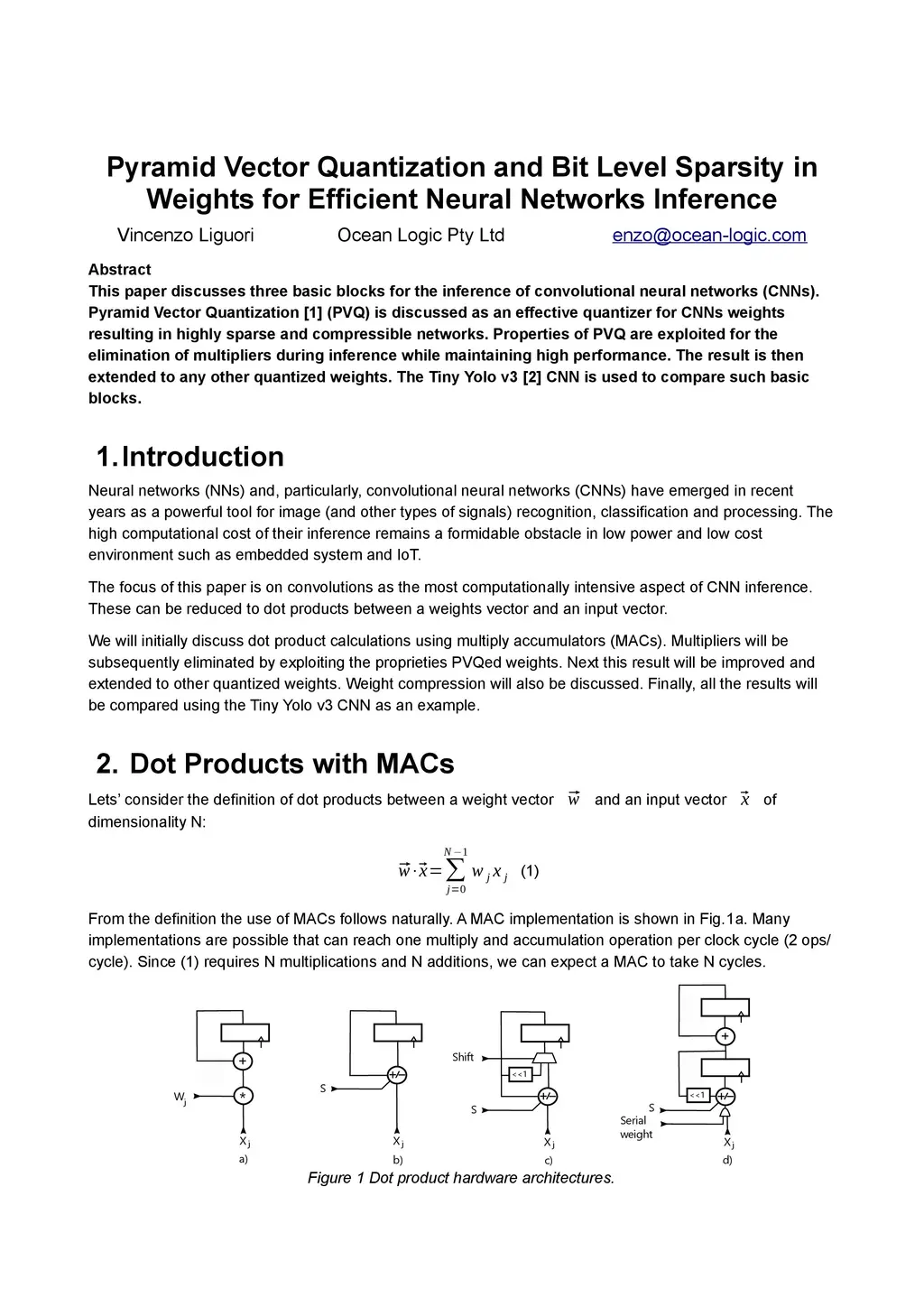 This paper discusses three basic blocks for the inference of convolutional neural networks (CNNs). Pyramid Vector Quantization (PVQ) is discussed as an effective quantizer for CNNs weights resulting in highly sparse and compressible networks. Properties of PVQ are exploited for the elimination of multipliers during inference while maintaining high performance. The result is then extended to any other quantized weights. The Tiny Yolo v3 CNN is used to compare such basic blocks.