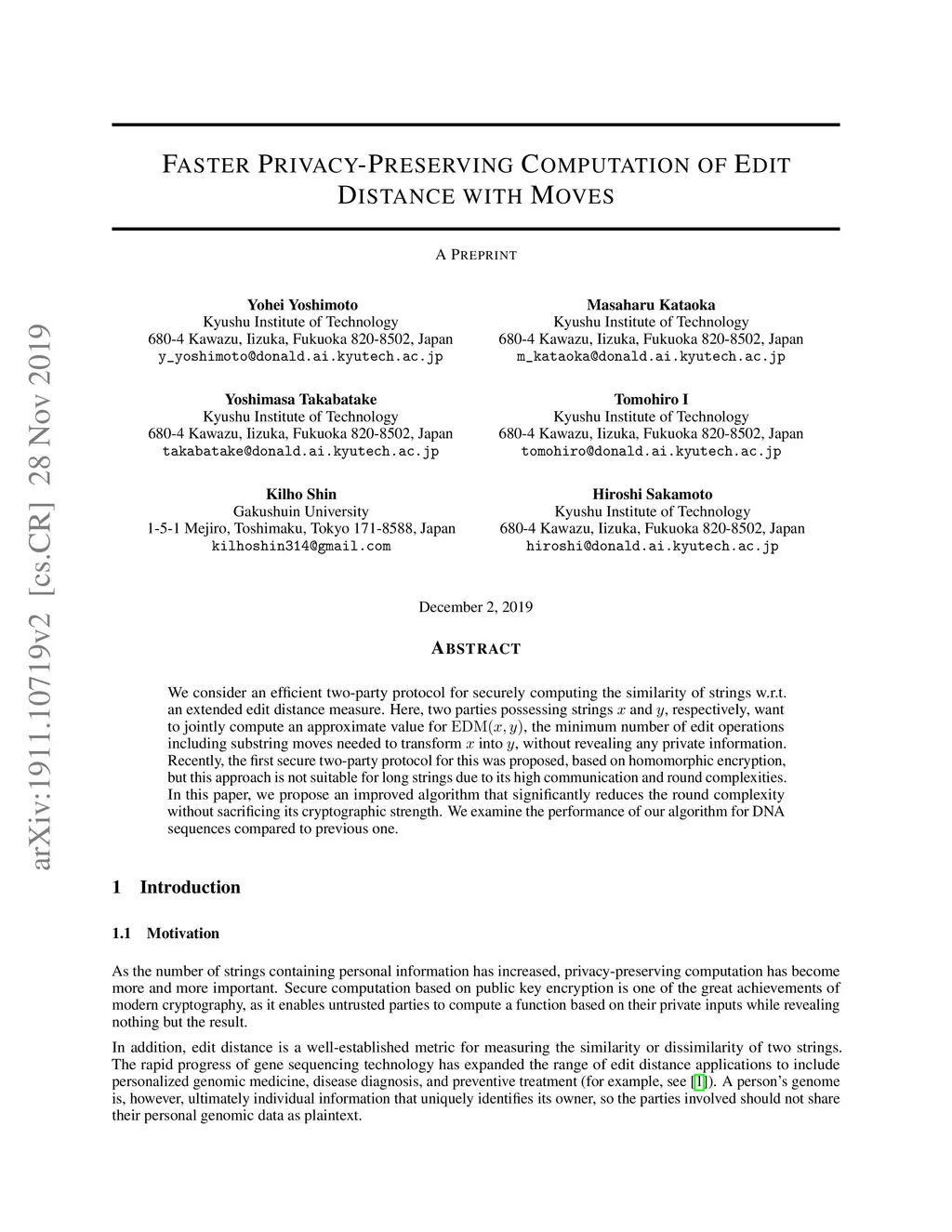 Faster Privacy-Preserving Computation of Edit Distance with Moves